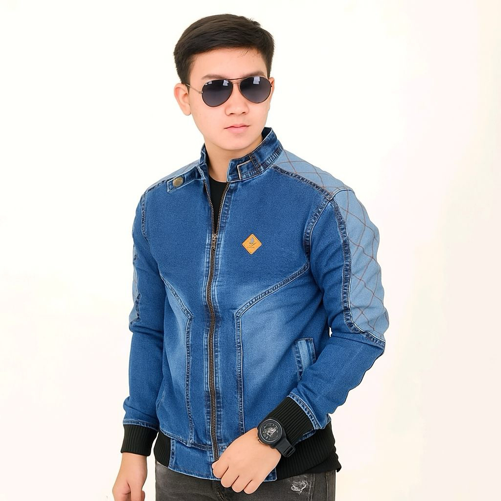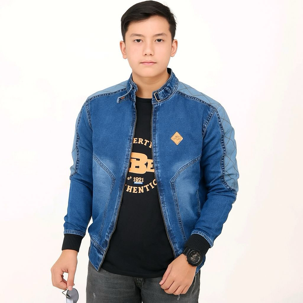 TERLARIS Jaket Jeans Denim Laki - Laki Reselleting Jalit Bomber Pria Bahan Tebal Bisa