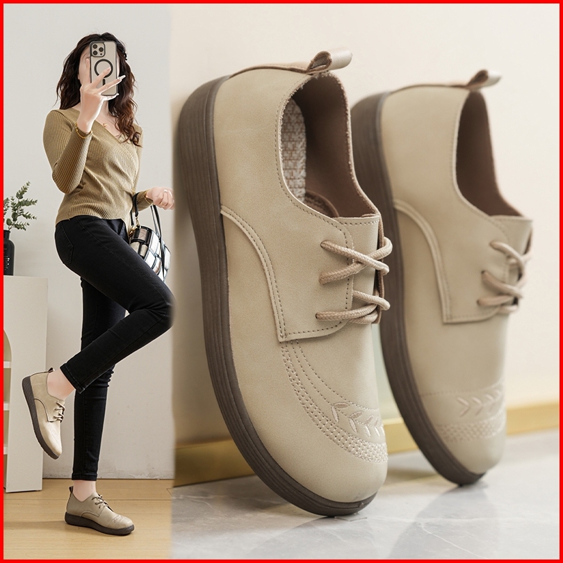 Qingshui Versy Sepatu Docmart Wanita Loafers Wanita Sepatu Kulit Wanita Flatshoes Casual Sepatu Kerja Wanita