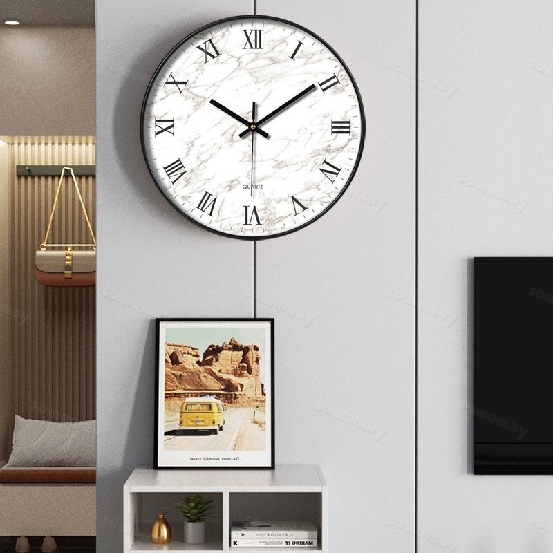 SOMEMAY Jam dinding Motif marmer putih M47 / Jam dinding aesthetic 30CM/ Jam dinding tempel