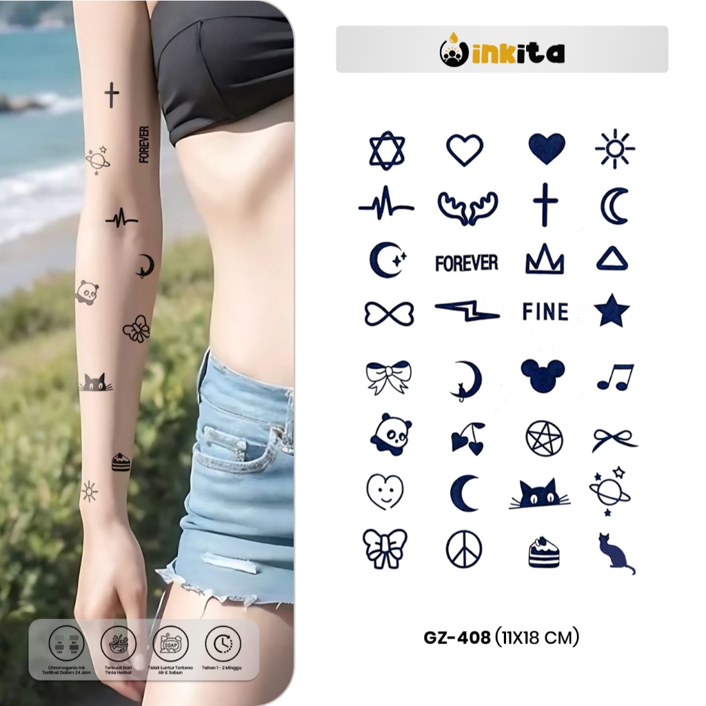 INKITA-Tato Temporer Sementara Semi Perrmanen Tattoo Fruit Ink Tatto Kecil Estetik Tatoo Cewe Temporary Chromogenic