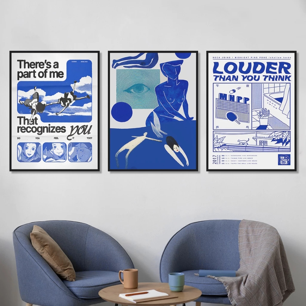 Hiasan Dinding Minimalis Poster Aesthetic Dekorasi Kamar Pajangan Rumah Wall Decor Kafe Blue