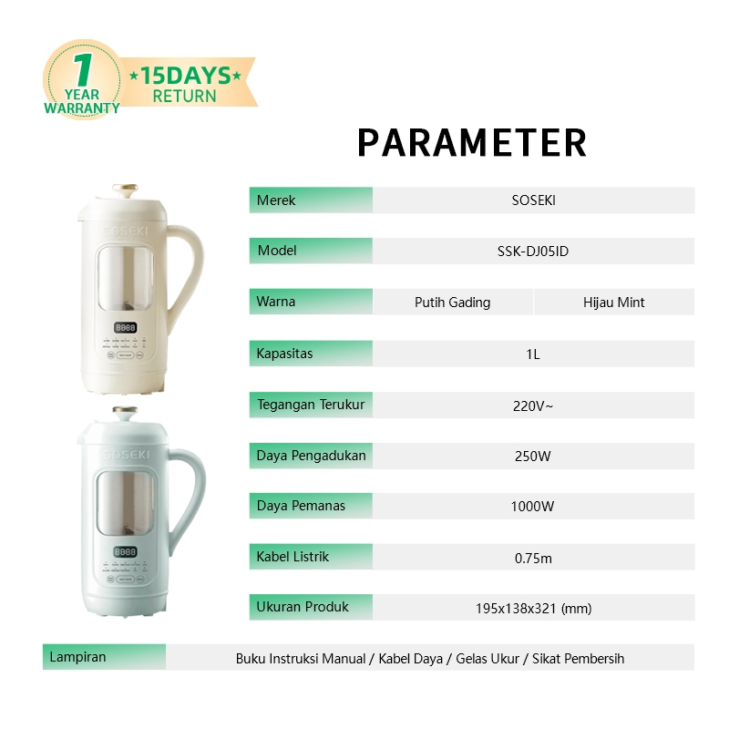 Soseki Transparan Soy Milk Maker 1L Visual Pantau Makanan SSK-DJ05ID