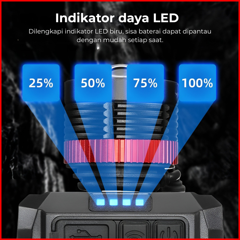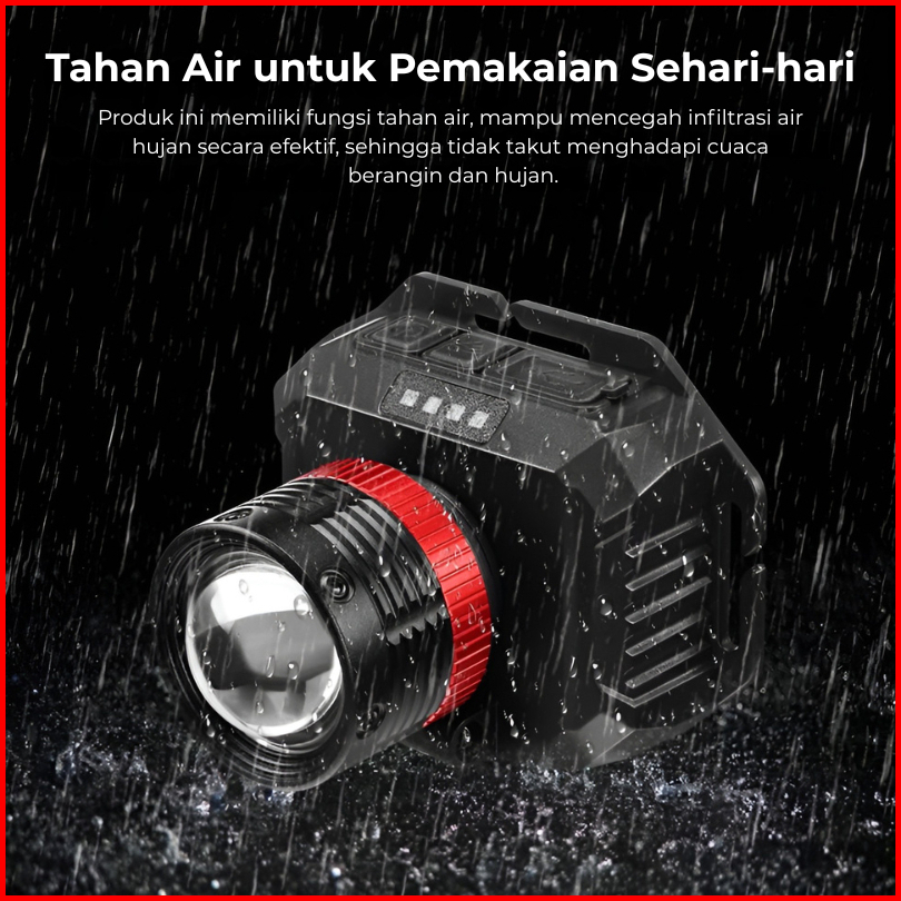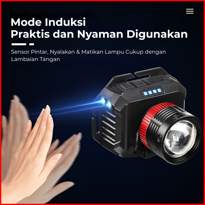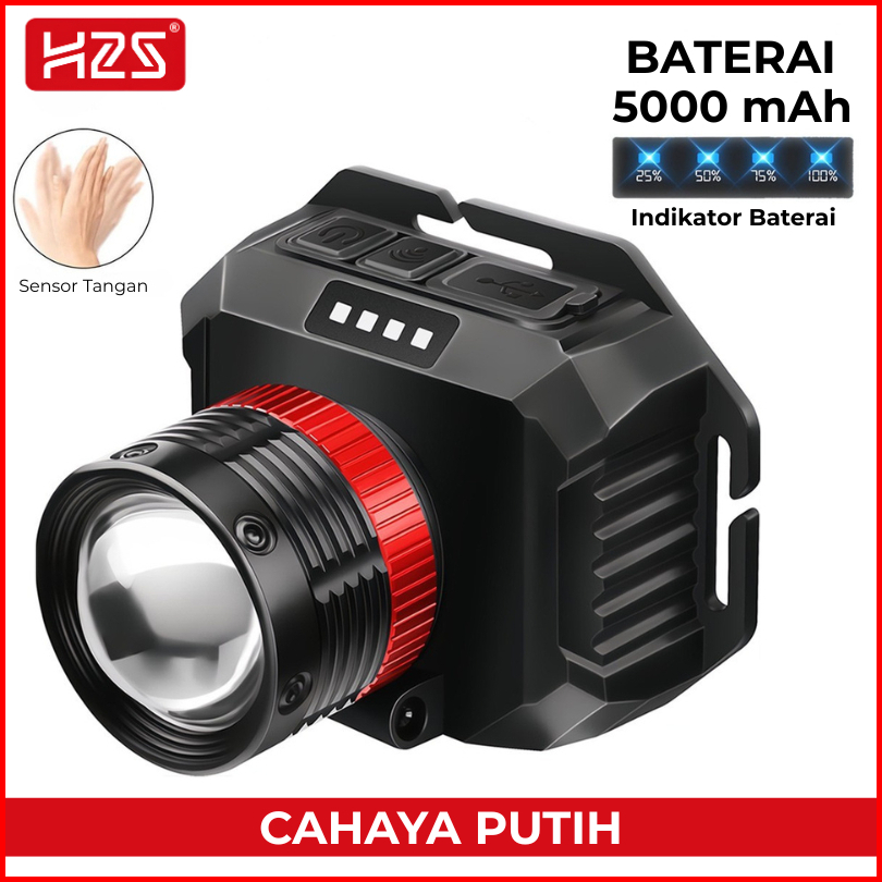 H2s Senter Kepala Cas Led Laser Sensor Gerak 50w 2 Baterai 5000mah Zoom Out In Putar Hs-4877p