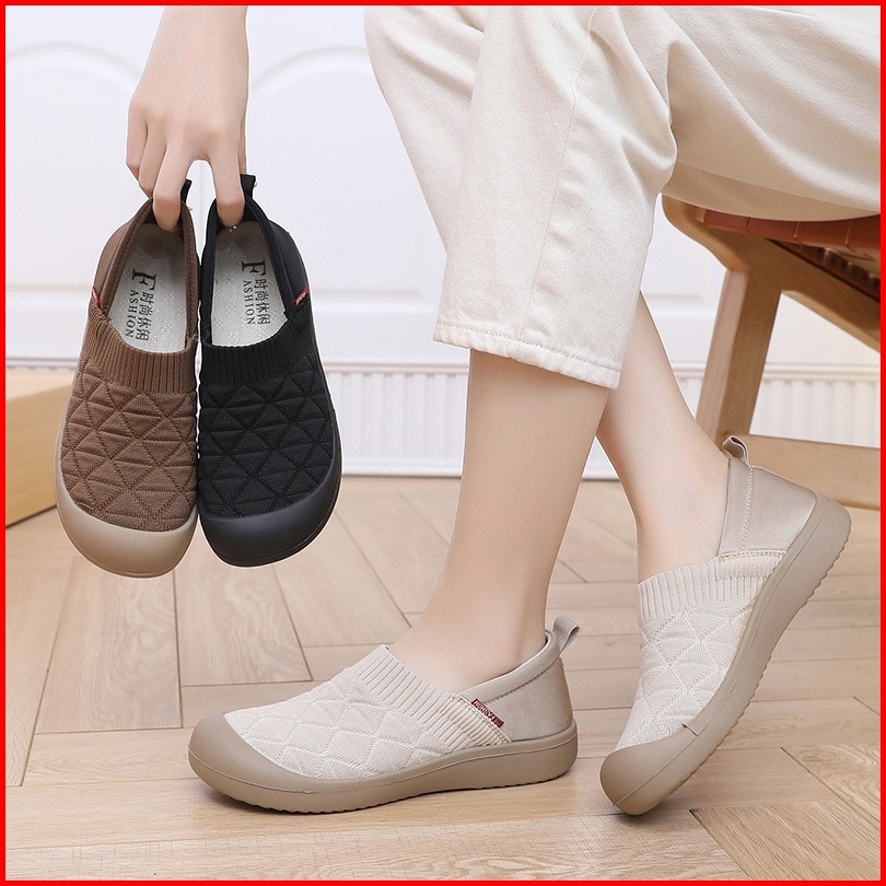 Nw067 Sepatu Slip On Wanita Casual Bahan Karet