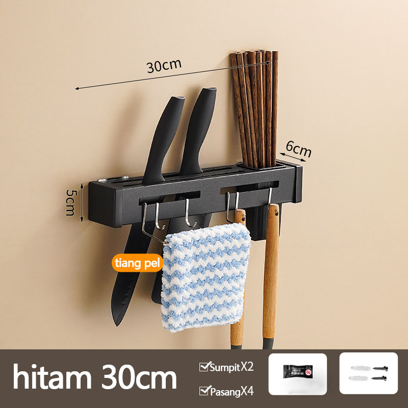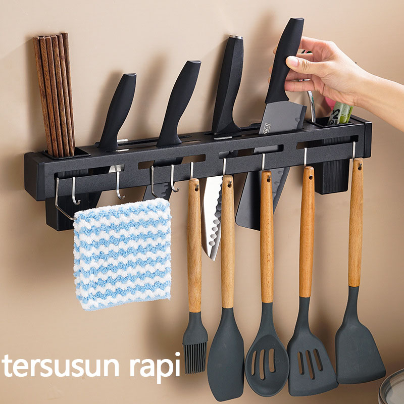 Rak Pisau Dinding Dapur Stainless Steel – Rak Gantung Multifungsi Tempel Tanpa Bor, Bisa Untuk Sendok Garpu & Bumbu