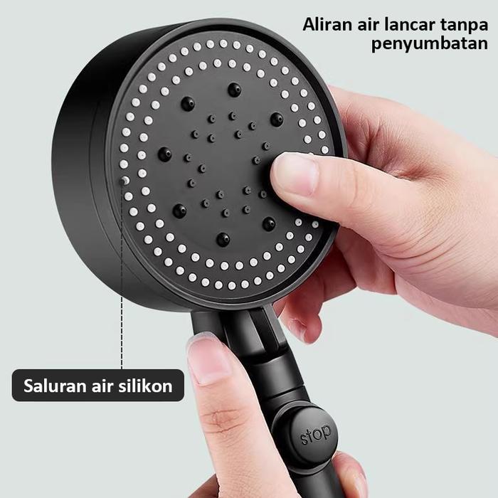 ORIGINAL KEPALA SHOWER HEAD 5 MODE HIGH PRESSURE PREMIUM HITAM ABS KAMAR MANDI - 2 IN 1 SET TERMURAH !!