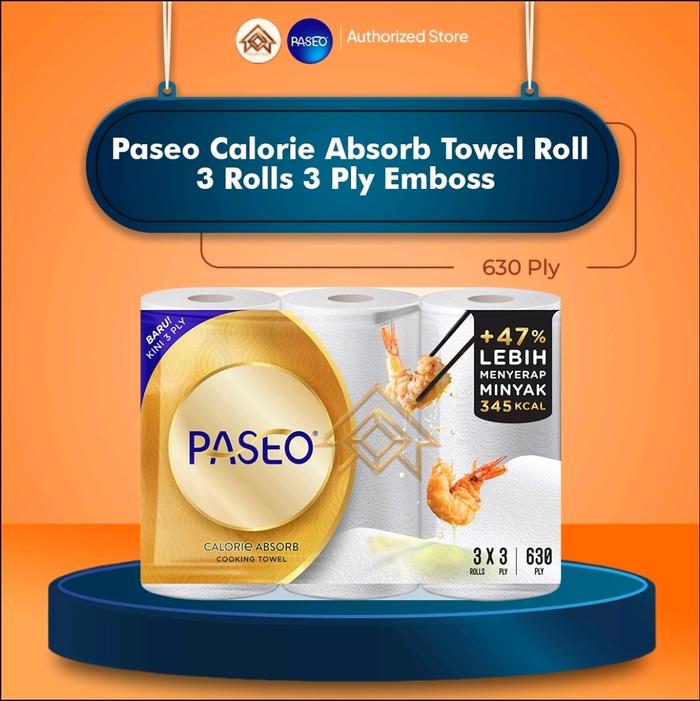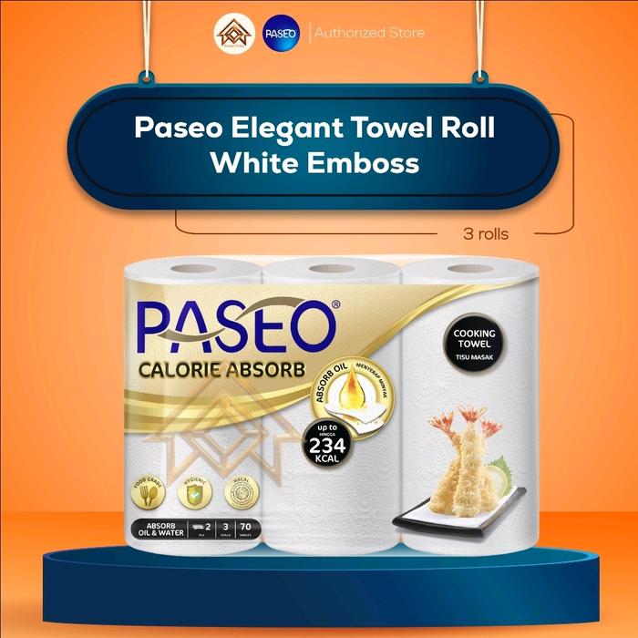 Paseo Calorie Absorb Cooking Towel Roll White Emboss 3 Rolls 70 Sheets 2 Ply Tisu Dapur Serap Minyak Murah