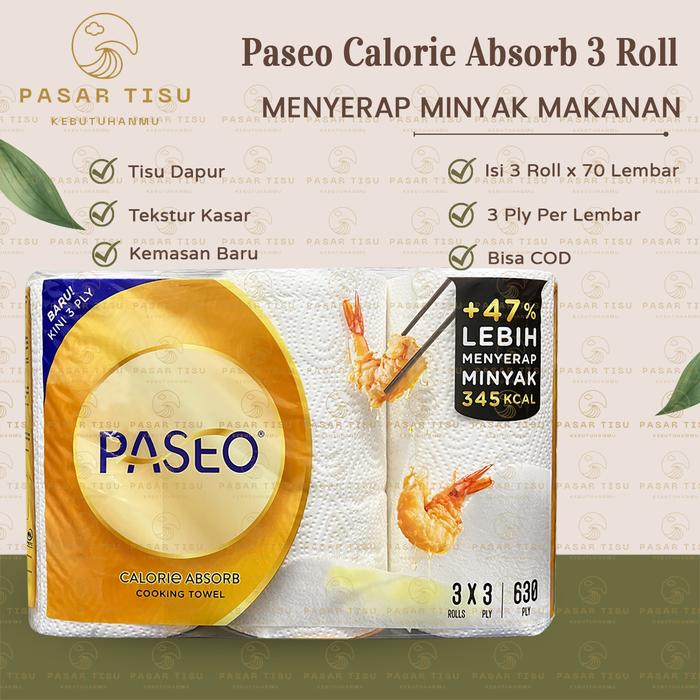 Tissue Paseo Calorie Absorb / Kitchen Towel 2 Roll - 70 Sheet / 2 Ply / Tisu Dapur Pengesat K3m45an 3 In 1