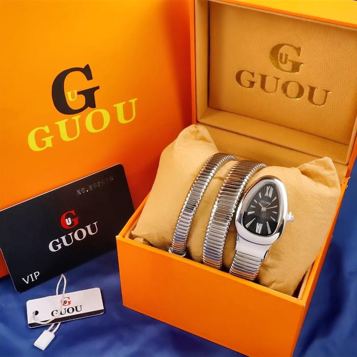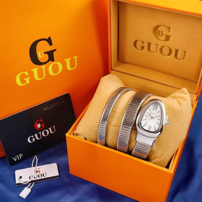 JAM TANGAN WANITA ORIGINAL GUOU G69150 MODEL LILIT RANTAI STAINLESS STEEL ANTI AIR FREE SET DAN