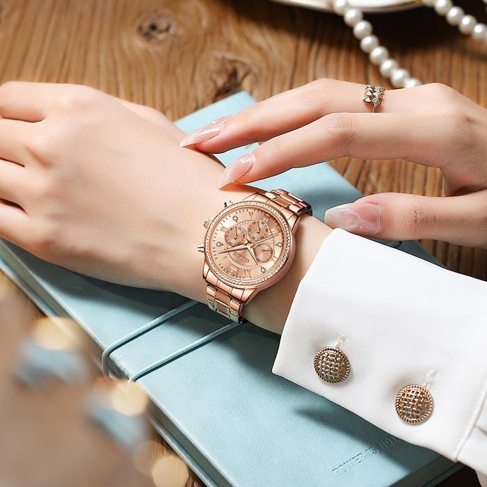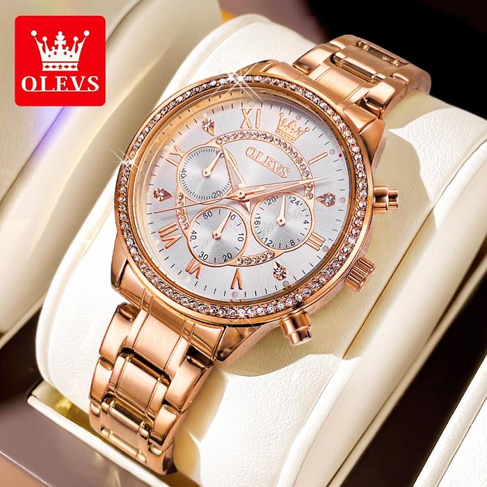 OLEVS Jam Tangan Wanita Anti Air Original Fashion Korea Analog Casual Unik Emas Mawar Women Watch