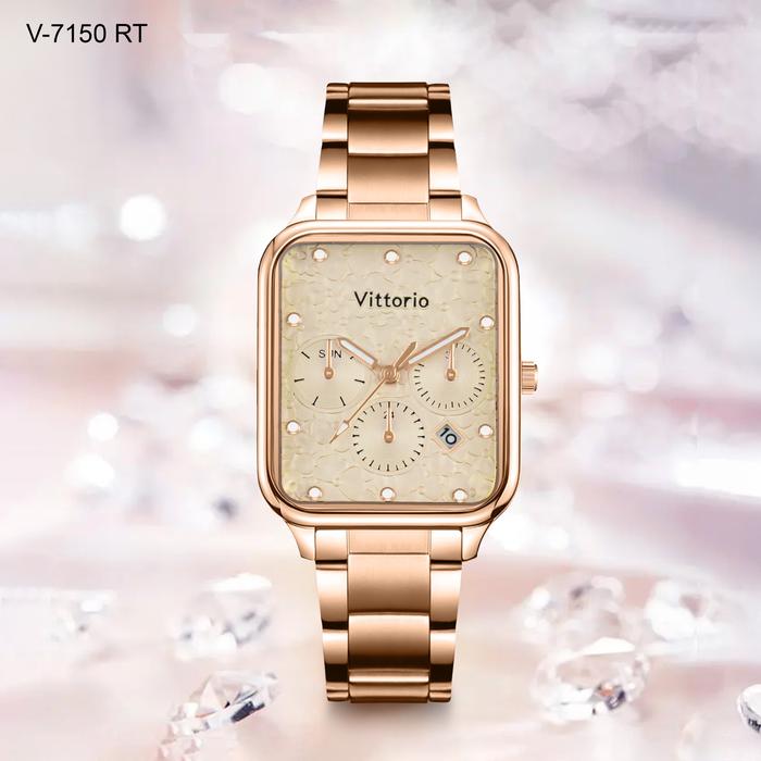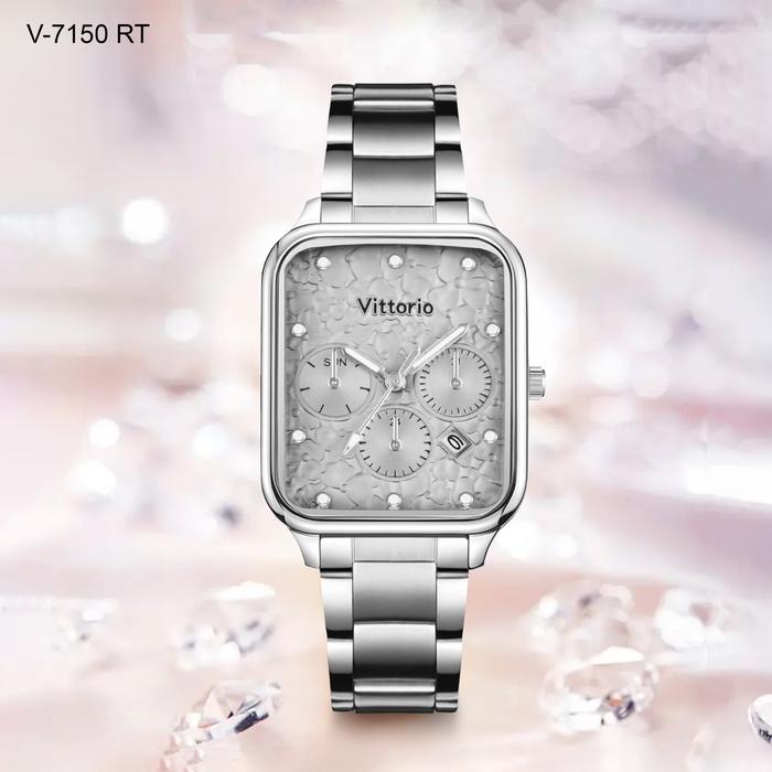 Jam Tangan Wanita Vittorio 7150 Rantai Tanggal Stainless Watches Kaca