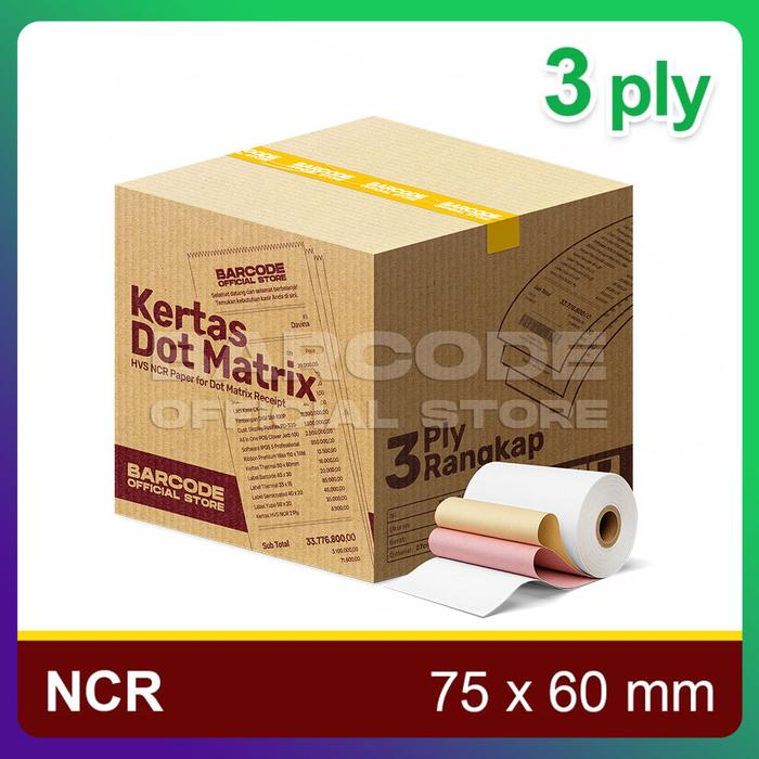 ( 1 Dus ) Kertas Struk Kasir 60 x 75 mm Rangkap 3 ply ( Isi 100 Roll )