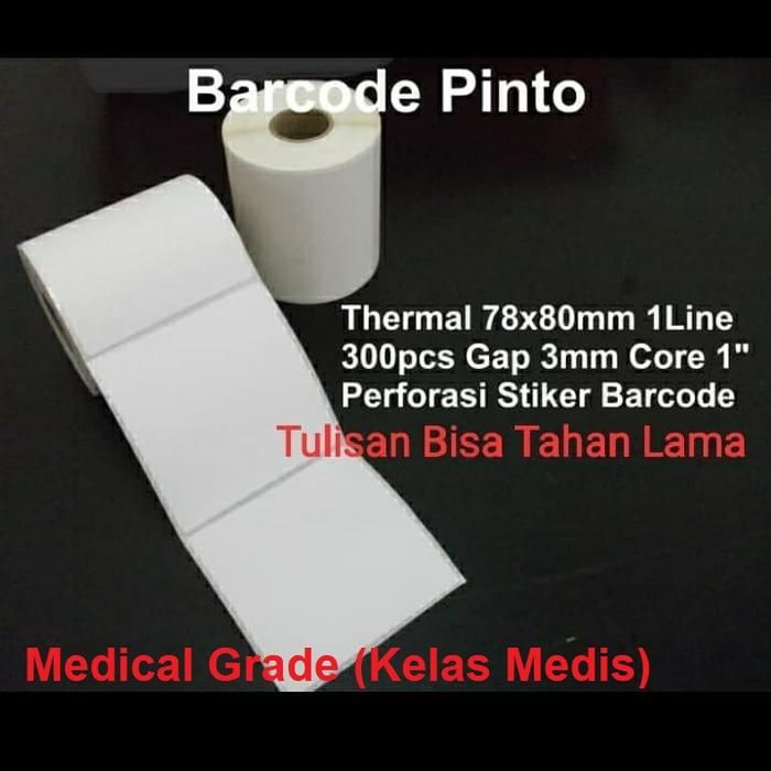 Thermal 78x80mm 1Line 300pcs Gap 3mm Core 1" Perforasi Stiker Bare