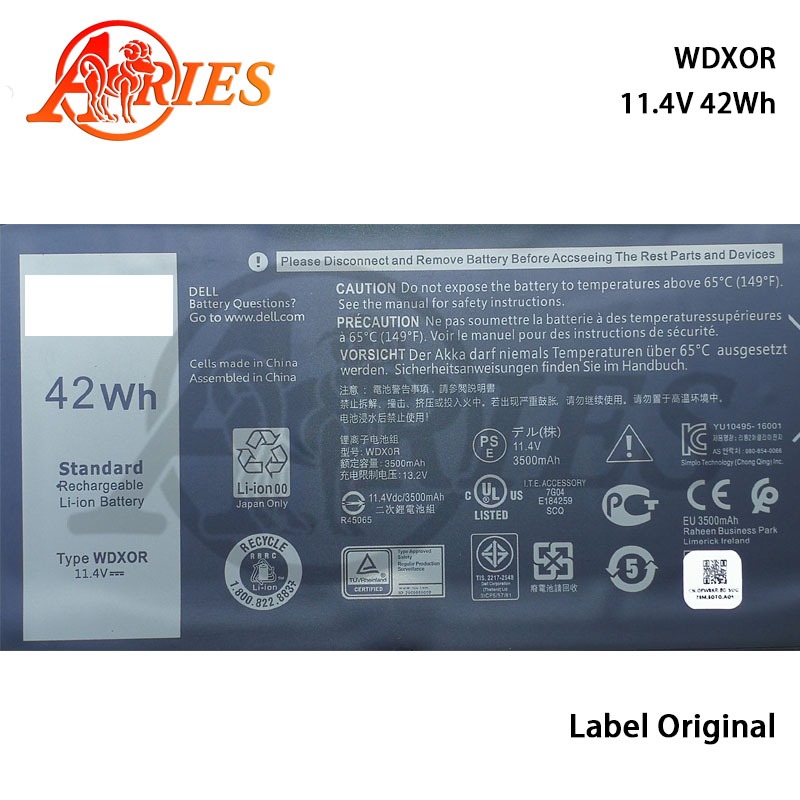 Baterai Laptop WDXOR 15 7569 P58F 17 5765 Inspiron i5368 11.4V 42Wh