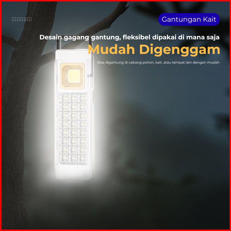 H2s Lampu Emergency Darurat Solar Charging Led Hook Portable