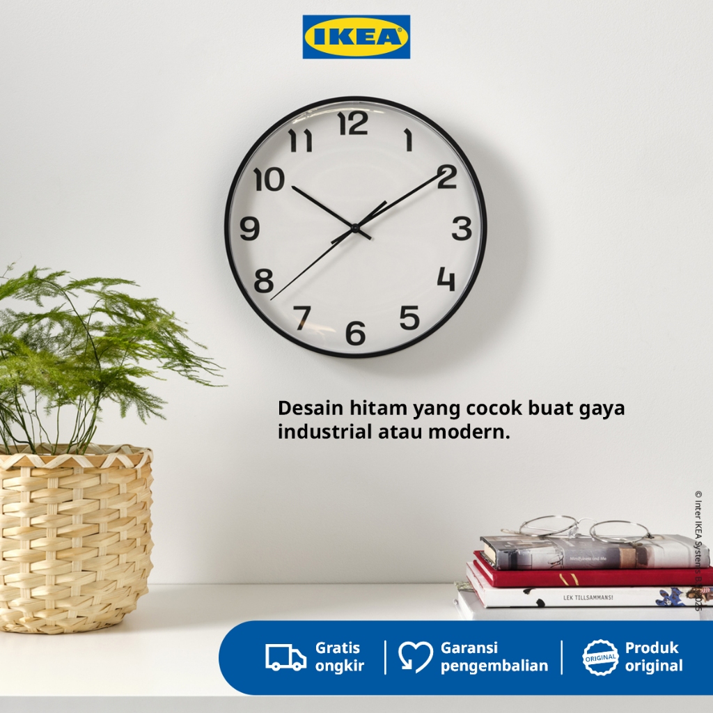 IKEA PLUTTIS Jam Dinding Klasik Voltase Rendah 28cm - Hitam