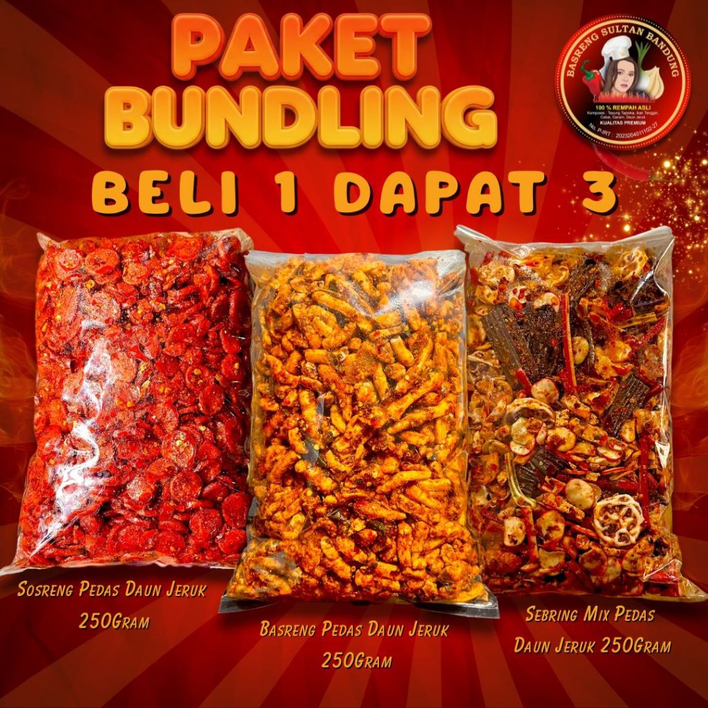 BUNDLING 3 ( SOSRENG 250GR BASRENG PEDAS 250GR SEBLAK MIX 250GR ) 100% ORIGINAL BEST SELLER TERLARIS