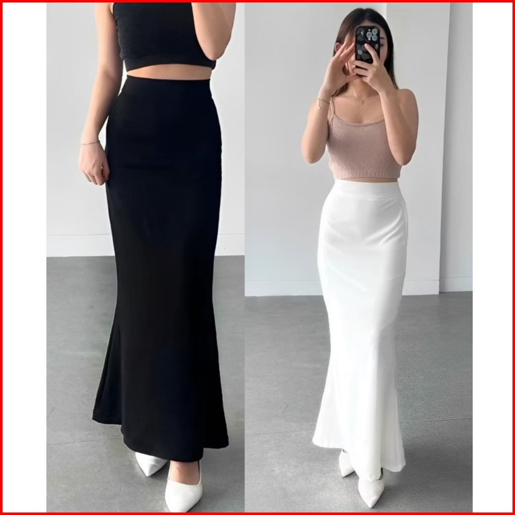 Skirt Rok Flare Lunar Mermaid Duyung Panjang Maxi Midi Wanita Bahan Scuba Melar Style Kekinian 2025