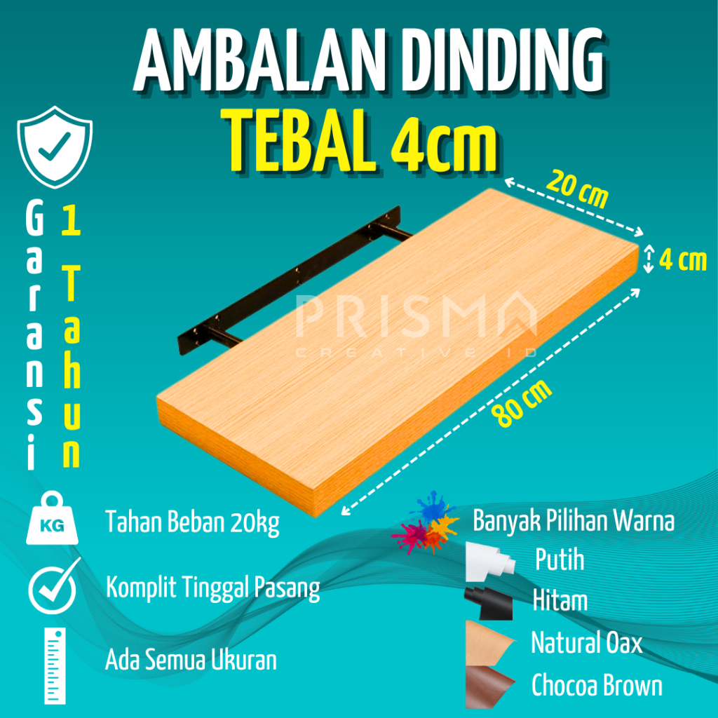 Rak Ambalan Dinding Minimalis Extra Lebar 20 cm Buku Kayu Tempel Kamar Mandi Dapur Serbaa