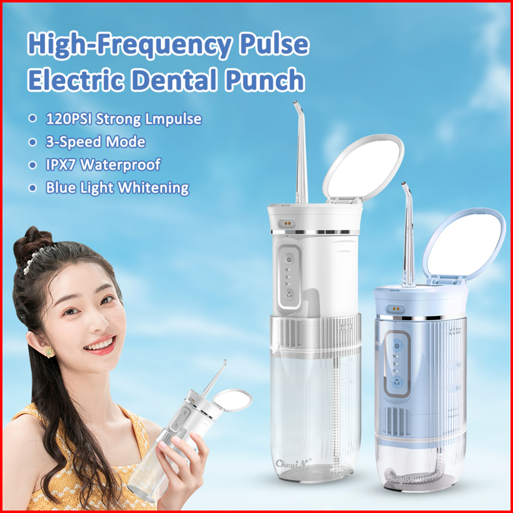 Ckeyin Oral Irrigator Benang Gigi Air Pulsa Electric Melipat Water Flosser Dengan Cermin Rias