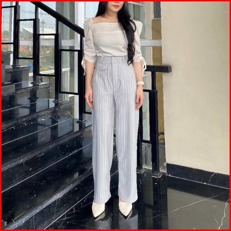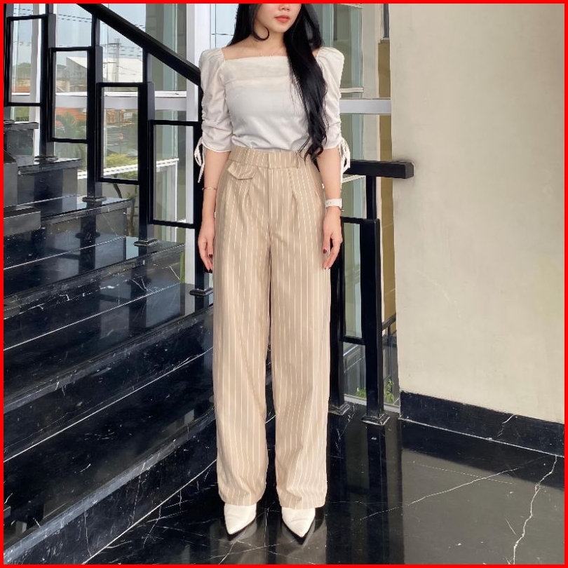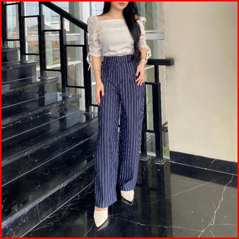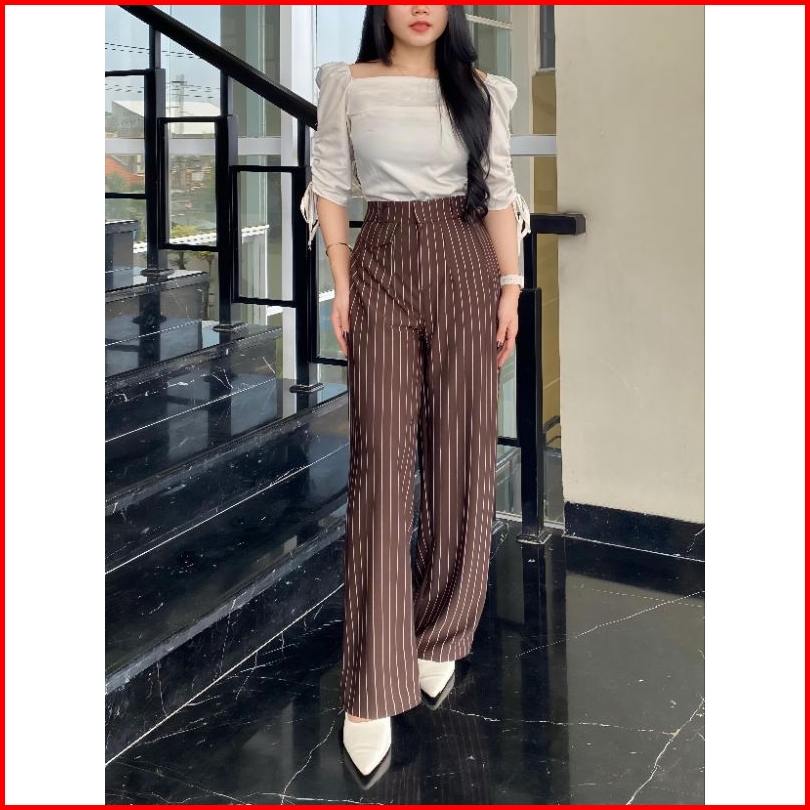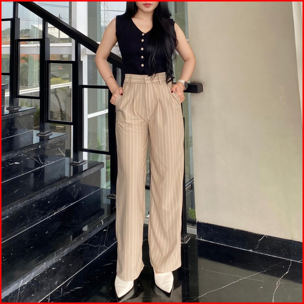 Celana Kulot Oro Pants Stripe Bangkok Wanita - Celana Kulot Loose Pants Highwaist Wanita Premium Anti Kusut