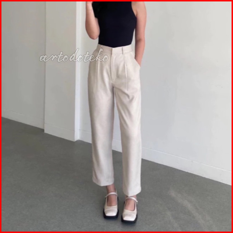 Ara Basic Pants Highwaist Celana Baggy Angkle Pants Celana Kantor Loose Pants