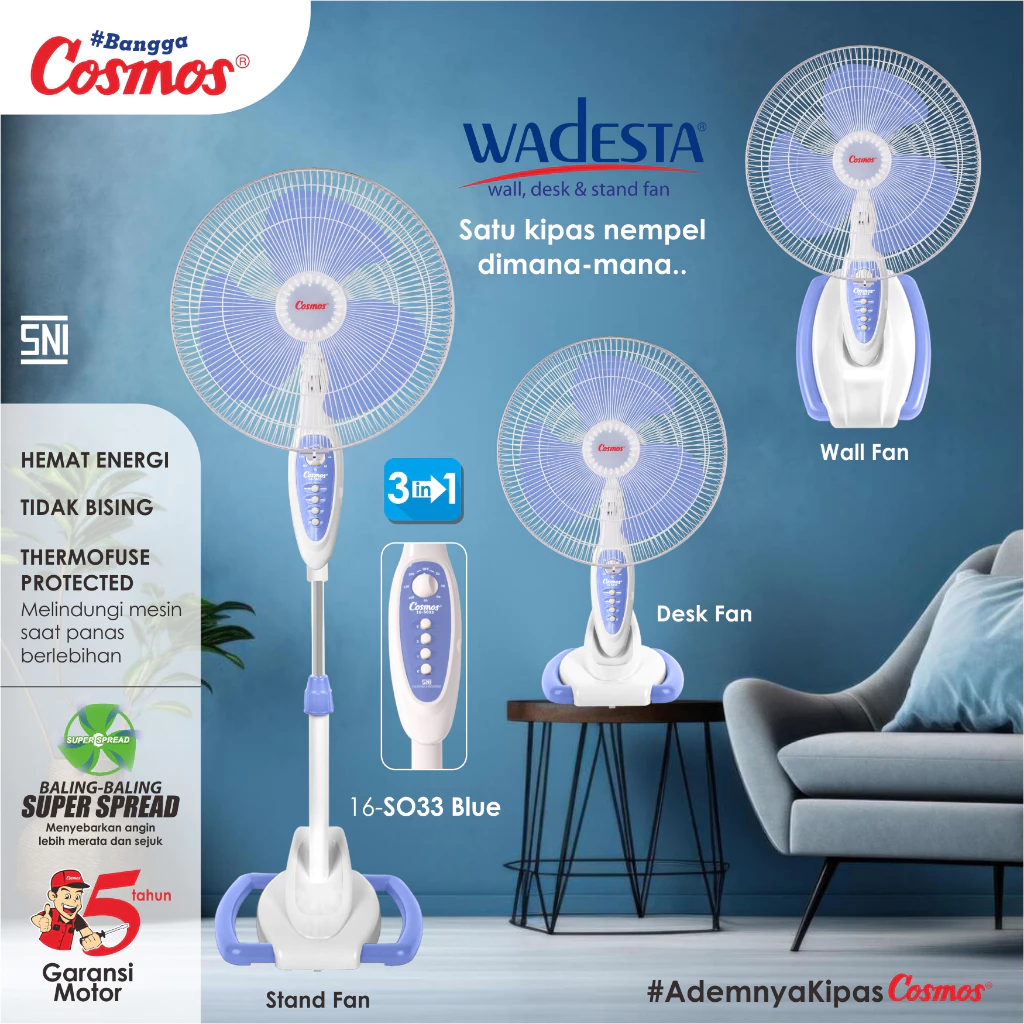 Cosmos Kipas Angin WADESTA (Wall, Desk, Stand) - 3in1 - Ony Series (Pengusir Nyamuk) - 16-S033 ONY