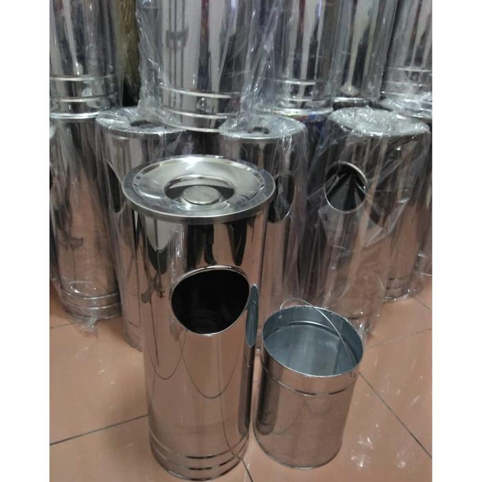 TEMPAT SAMPAH ASBAK STAINLESS BESAR TONG SAMPAH STAINLES TINGGI 60 CM