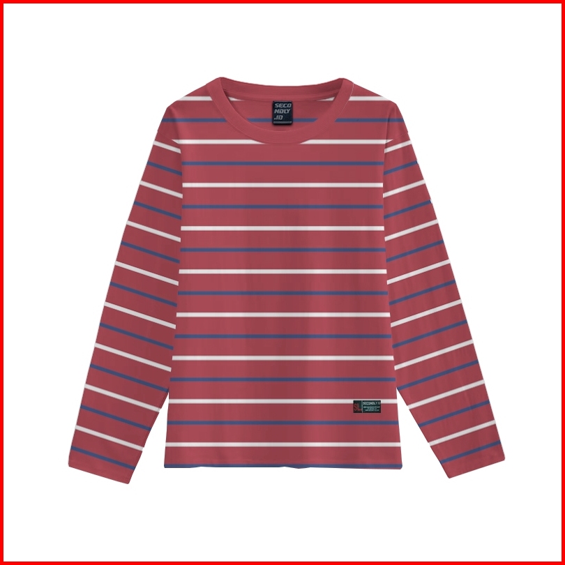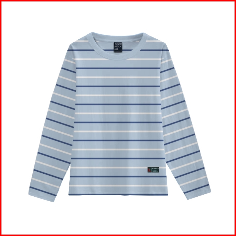 Secondly.id Kaos Salur Lengan Panjang Wanita Tshirt Women Three Tone Medium Stripe Cotton 24s