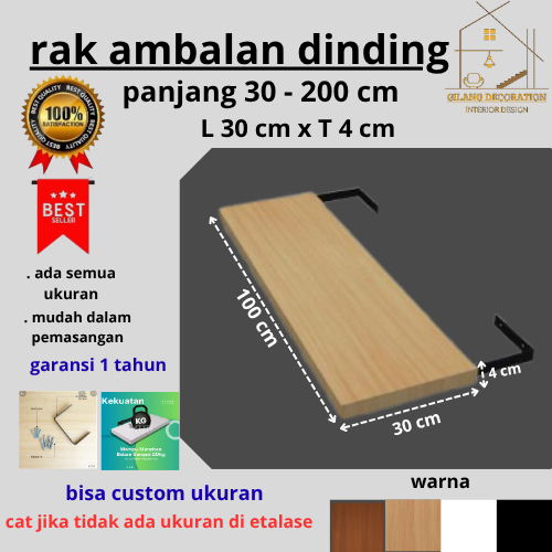 Rak Ambalan Dinding Extra Besar P 30 Cm - 200 Cm L 30 Cm Tebal 4 Cm
