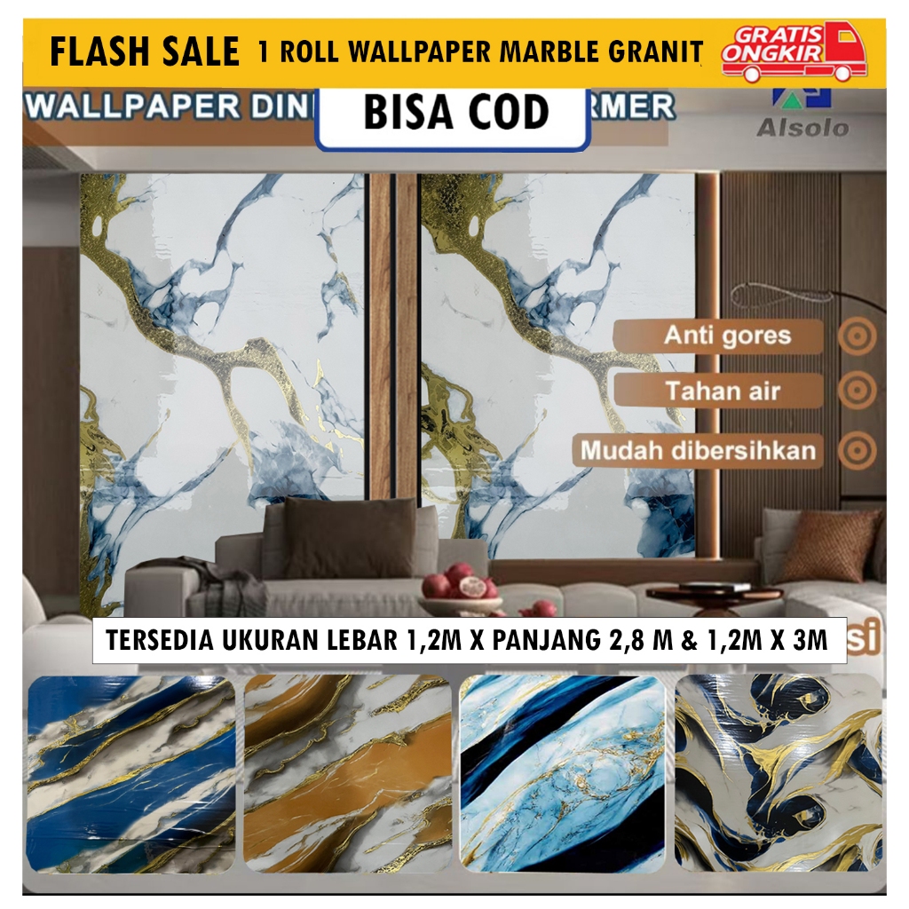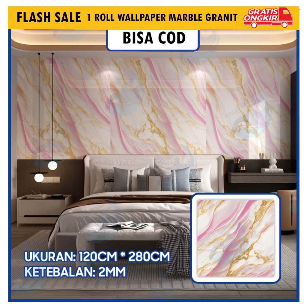1.2m x 3m Wallpaper Dinding Foam Vinyl Motif Marmer Pink Ketebalan 2.5mm Anti Air & Tebal