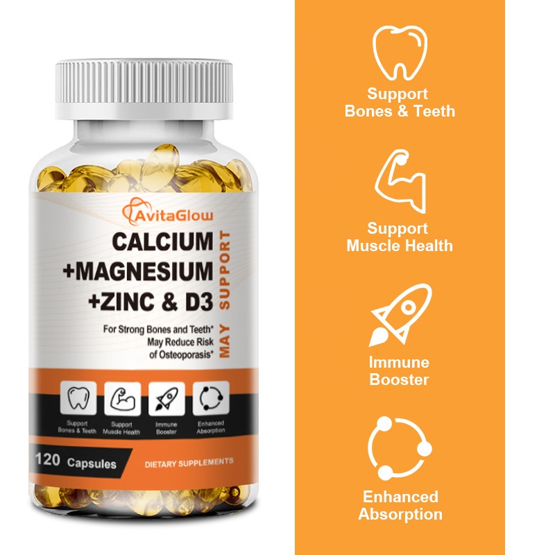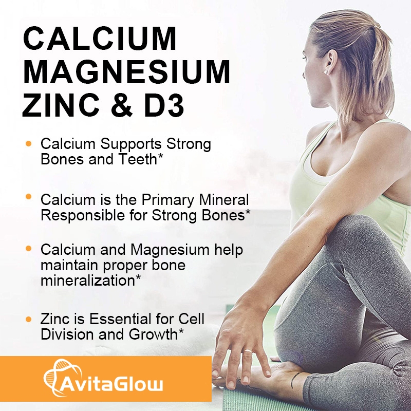 Avitaglow Calcium Magnesium Zinc Capsules With Vitamind3 For Kids & Adults Strong Bones&Teeth Promotes Heart & Nerves Sy