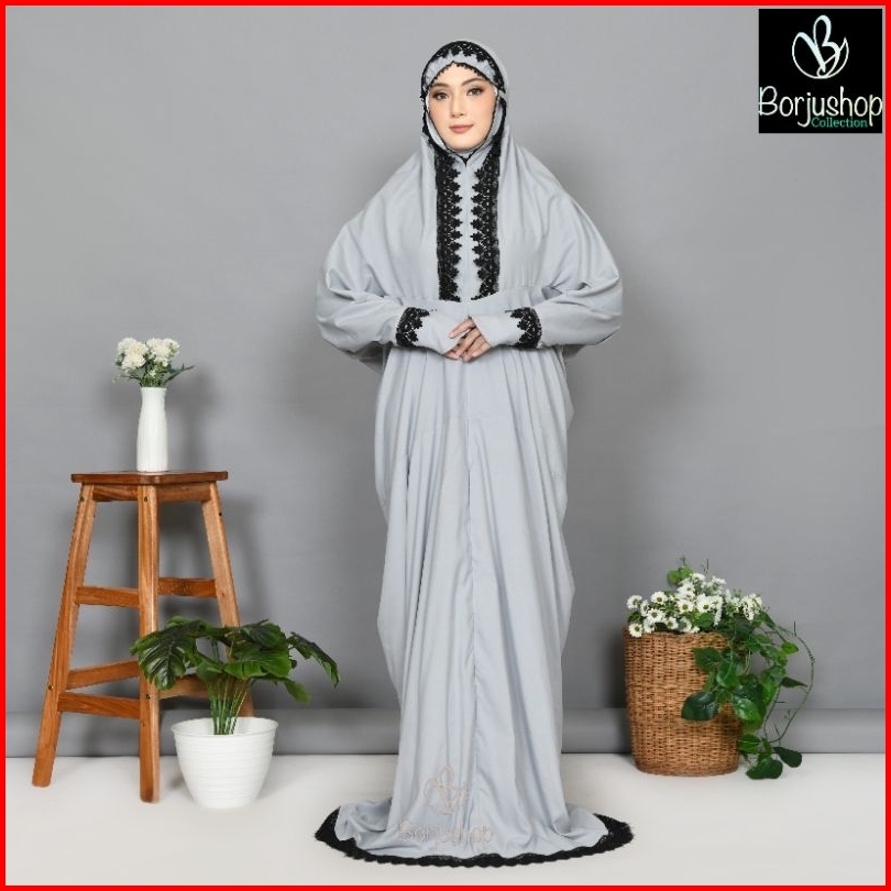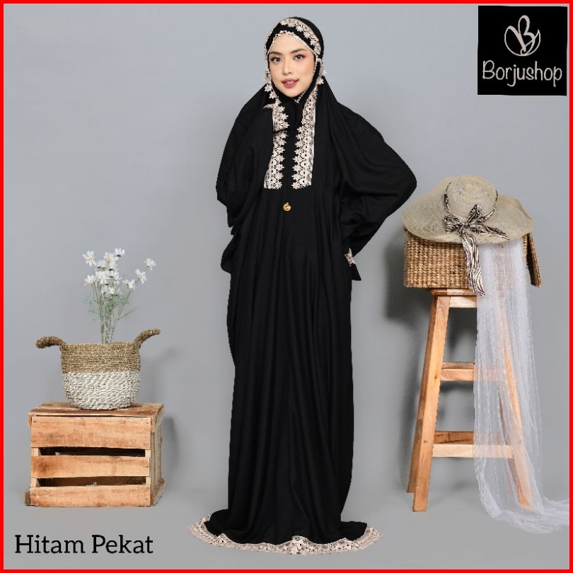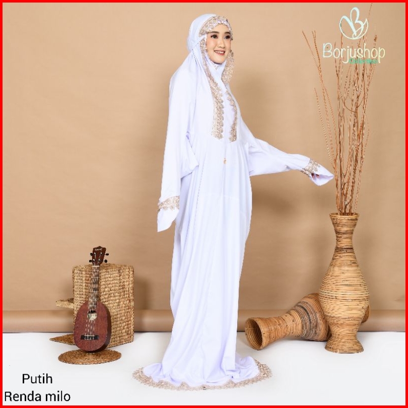 Borjushop - Mukena Terusan Dewasa Katun Polos Renda Bintang Krisdayanti Mukenah Terusan Putih