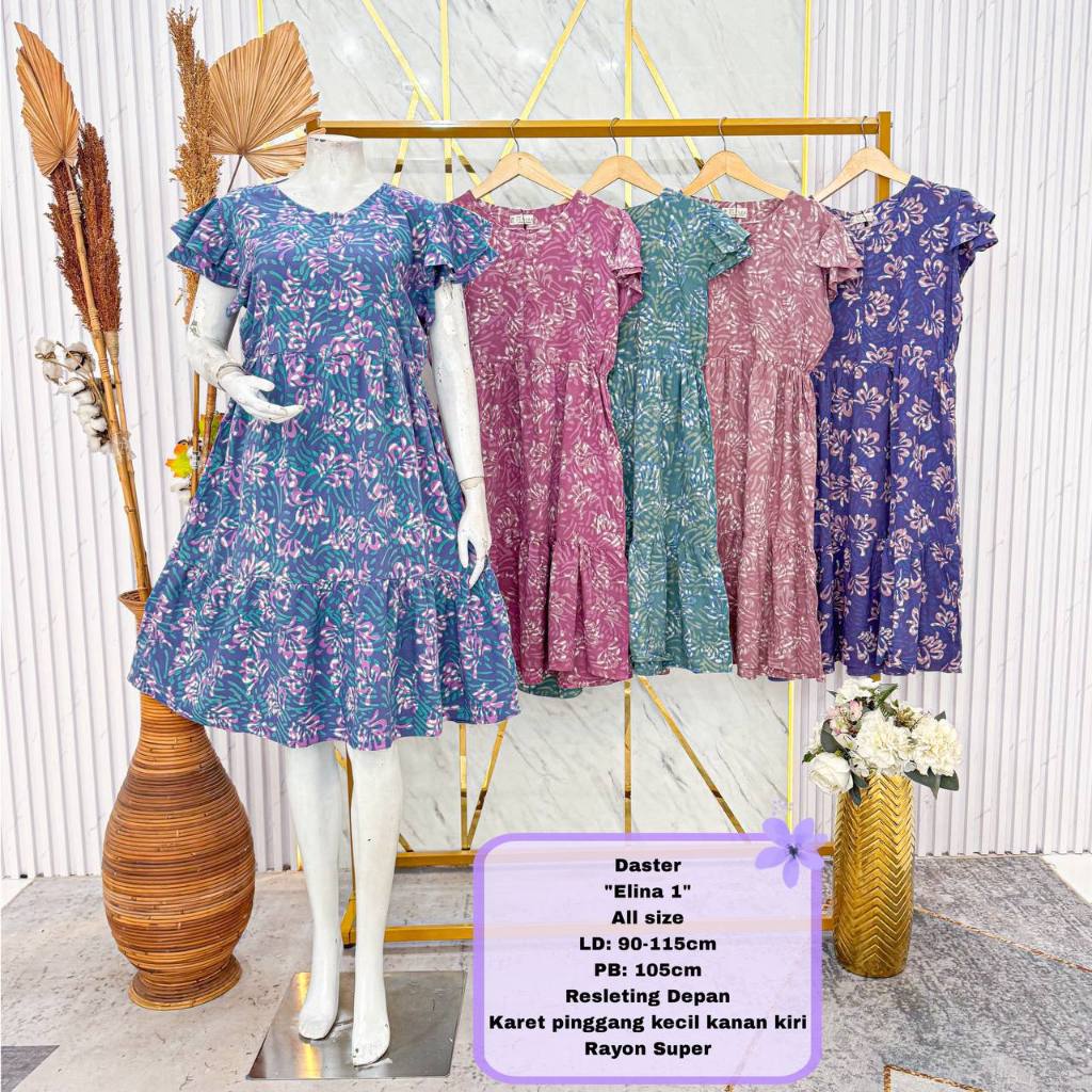 Alizta Daster Resleting Dress Motif Batik Cap Rayon Premium Lengan Pendek Busui Bumil Wanita AllSize
