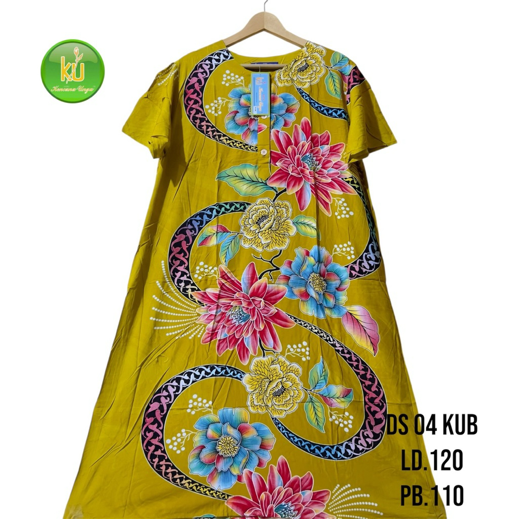 / Daster Batik Kencana Ungu Lengan Pendek Motif Bunga Terbaru Jumbo Ld 120 cm Label Biru / Dress Tidur Baju Santai Wanit