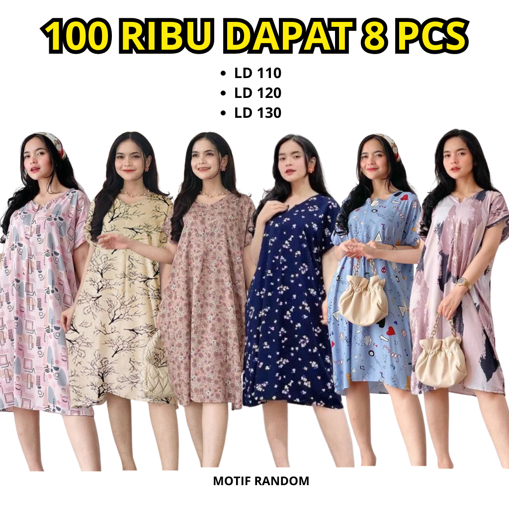 100 Ribu Dapat 8 Pcs Daster Kekinian Terbaru Wanita / Daster Midi Standar Jumbo Piyama Baju Tidur Wanita Bali / Daster F