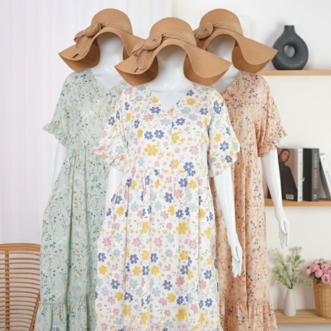 Mocca, Veryflow, Coksu, Bunga powder, Pinky, Bianca Rayon Twill, Salur Pita, Fresh Poppy, Marigold, Fabric, Dark Navy, Yellow Flower, Green Pink Flower, Black Pita, Denim, Cute Flower, Dusty Forest