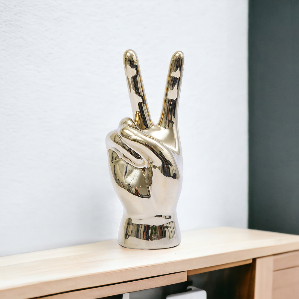 Informa 18 cm Patung Miniatur Peace Hand - G-Old Champagne Aesthetic Home Decor Unik Dekorasi Ruangan Seni Modern Orname