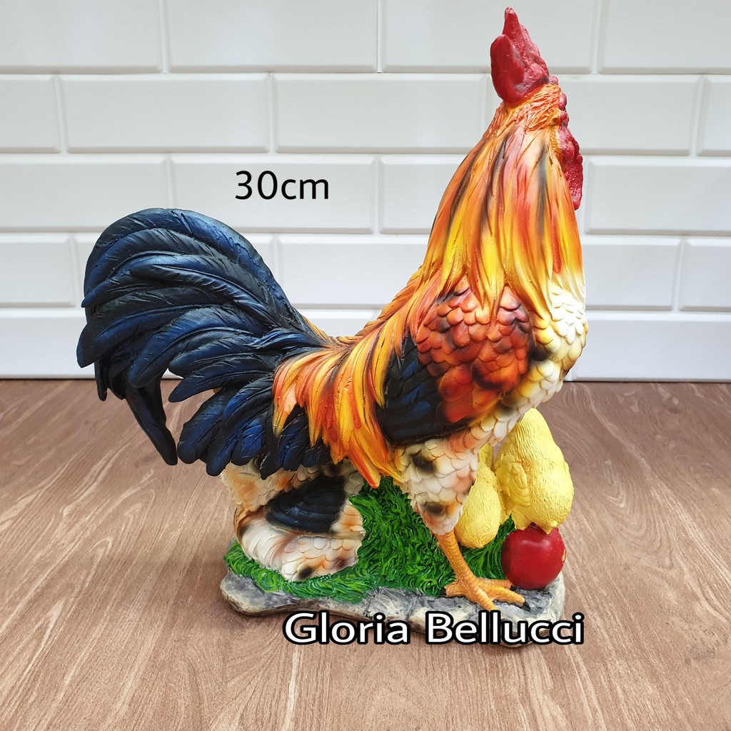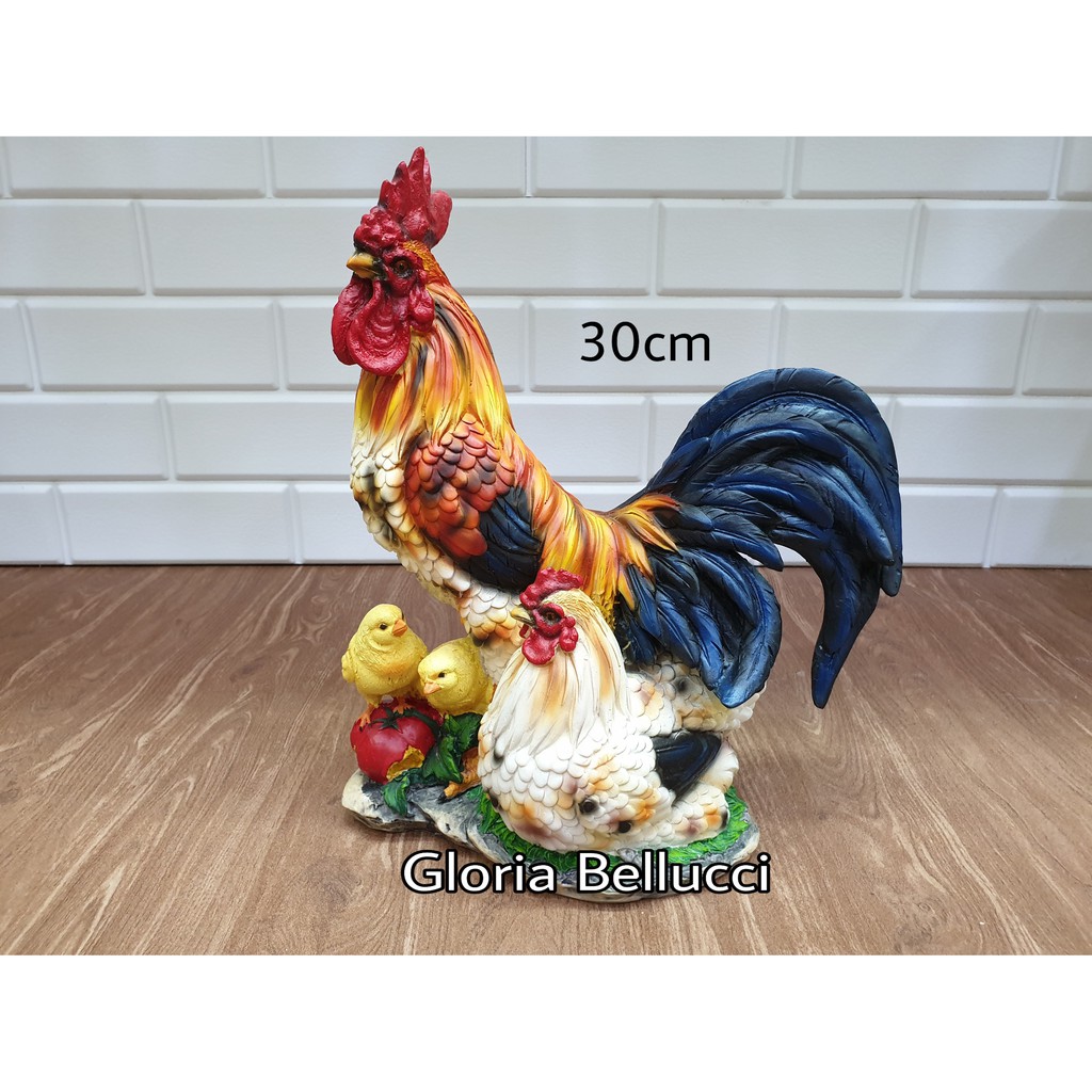 patung pajangan ayam jago family miniatur chicken dekorasi taman kebun kolam