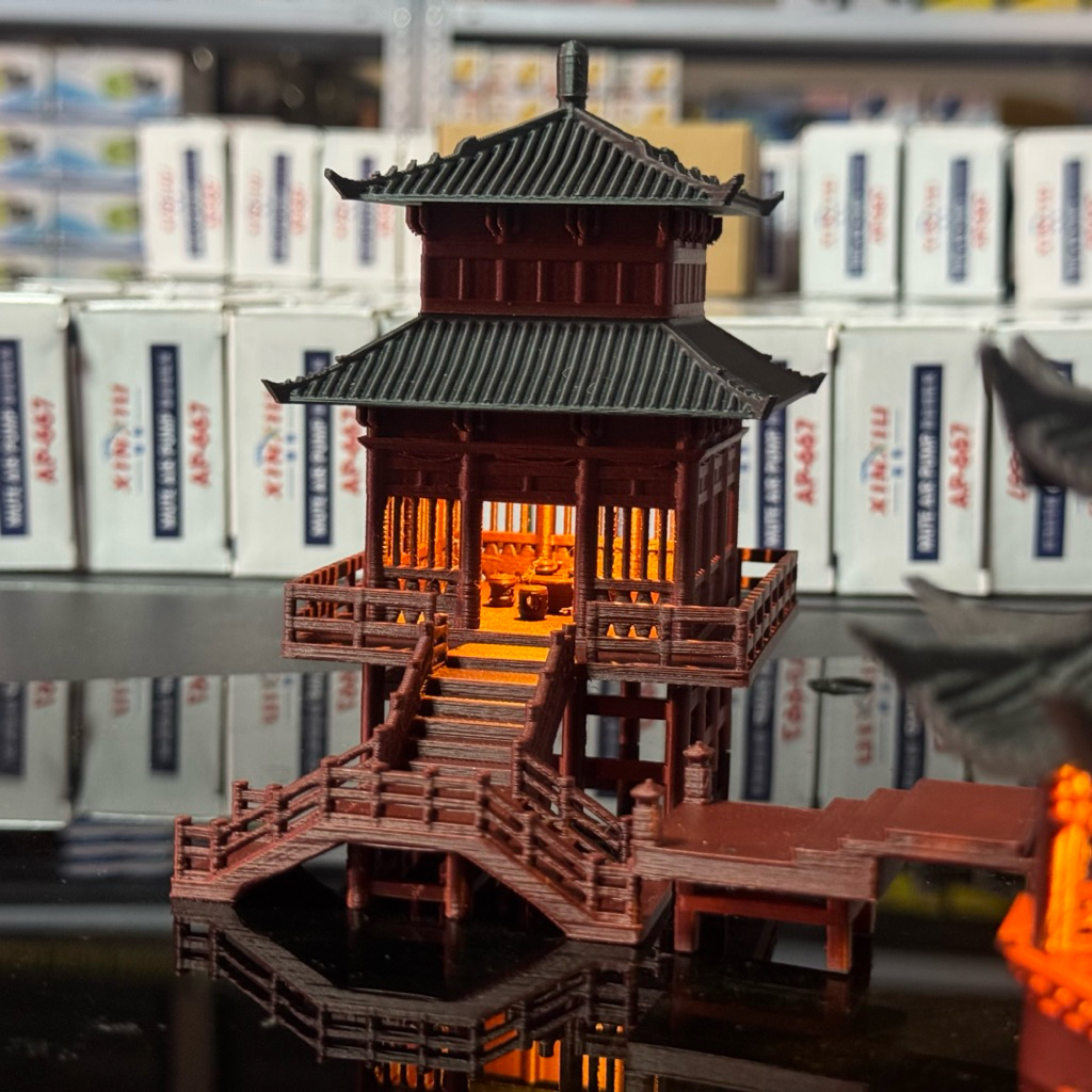 miniature set kuil koridor gazebo berlampu hiasan aquascape paludarium diorama super realistic