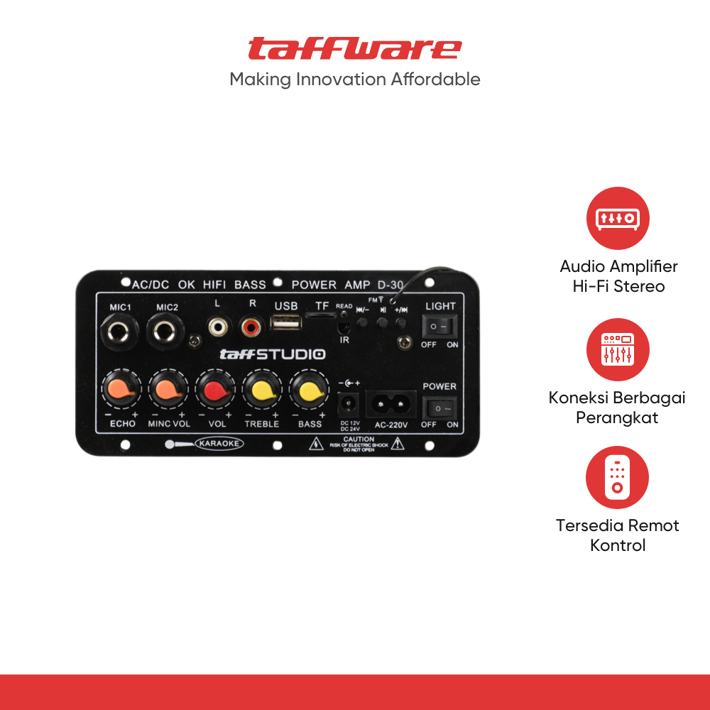 TaffSTUDIO Amplifier Board Audio Bluetooth USB FM Subwoofer DIY 40W - D30