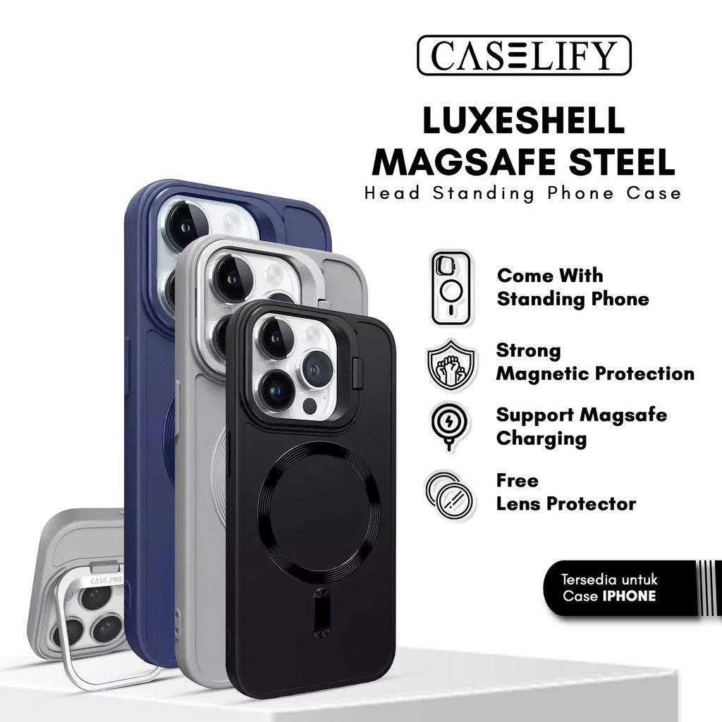 case ASELIFY luxeshell magsafe hard standing phone bonus free lens protector iphone case 11 12 13 14 15 16 pro plus