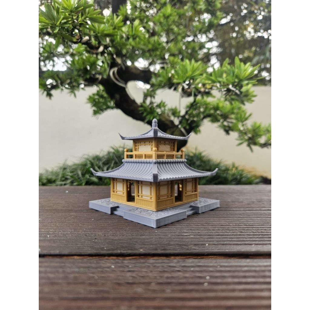 Miniature Chinese House – 2-Story Pagoda Traditional Asian Architecture | 3D Printed Home Decor | Aquascape