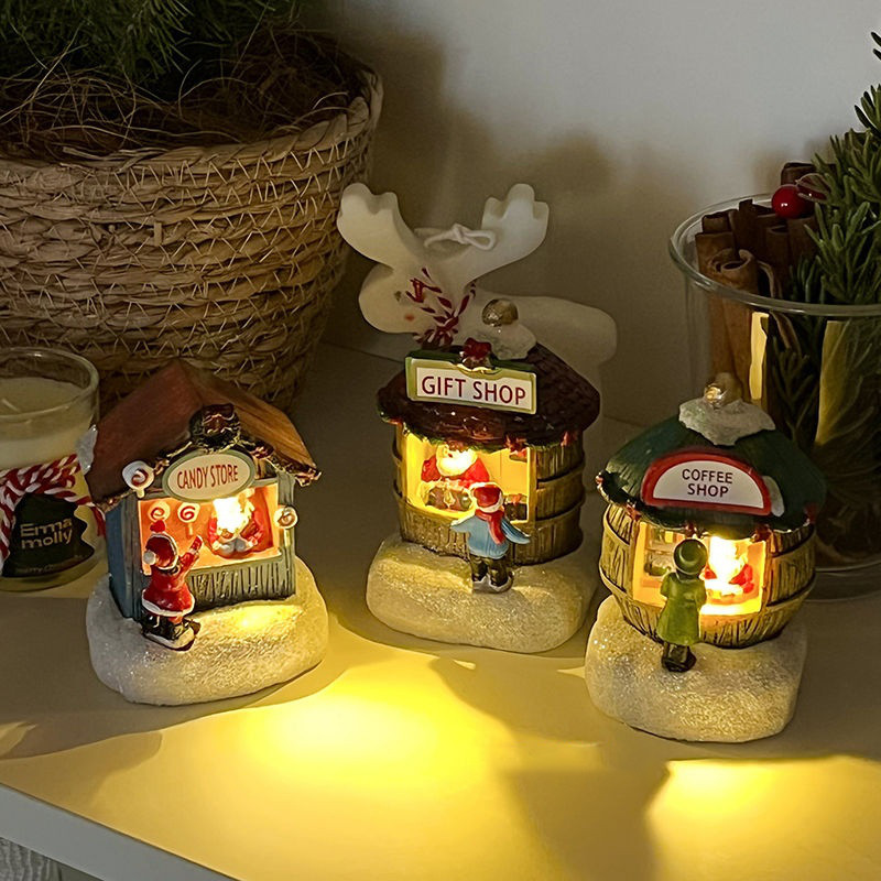 Xmas Resin House Ornamen Dekorasi Natal Hiasan Dekorasi Natal LED Rumah House Ornamen Christmas Miniatur Aksesoris Chris