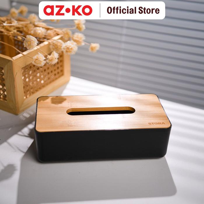 AZKO Stora Kotak Tisu - Hitam Tissue Box Holder Tempat Tisu Aesthetic Wadah Penyimpanan Tisyu Perlengkapan Rumah Tangga