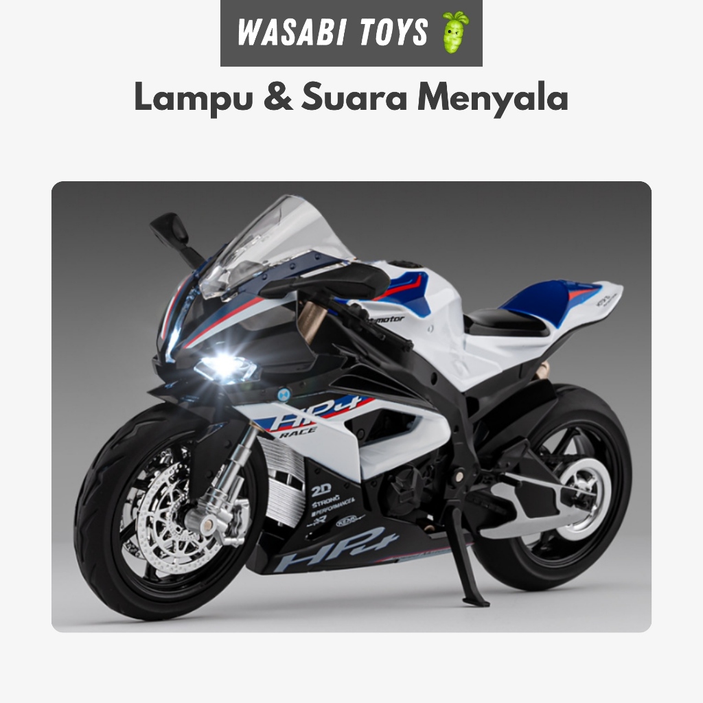 Diecast 1:12 BMW HP4 Miniatur Motor (Dengan Paddock, Alas Motor, Fitur Lampu, Suara, Suspensi)