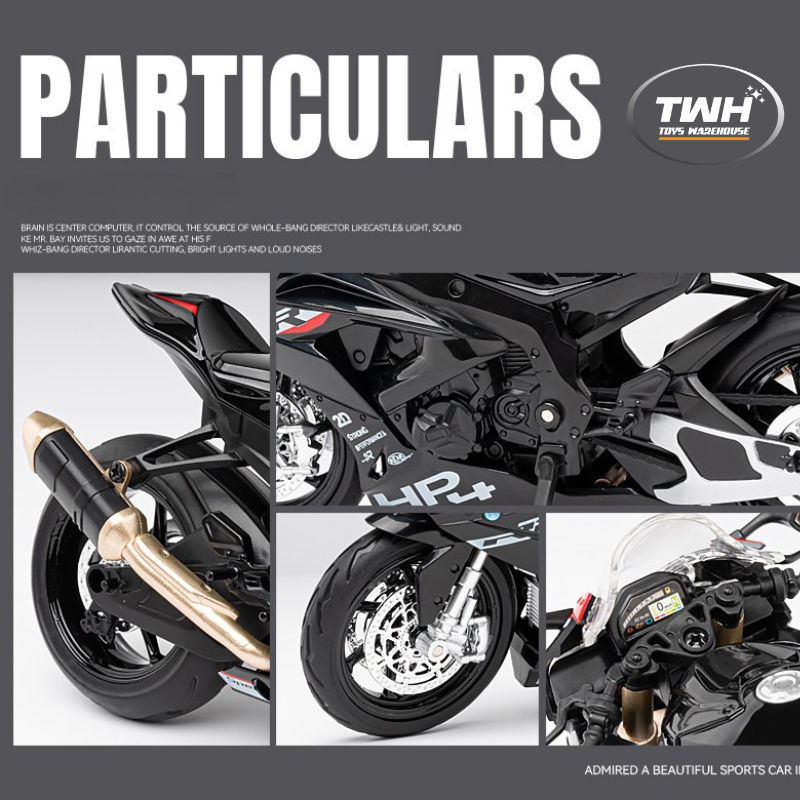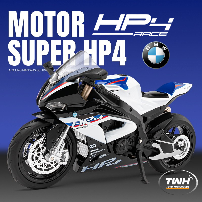 TWH BMW HP4 RACE 2025 DIECAST MOTOR SKALA 1:12 Premium Dengan Lampu & Suara + Lifting Frame Mainan Hadiah Kado Koleksi