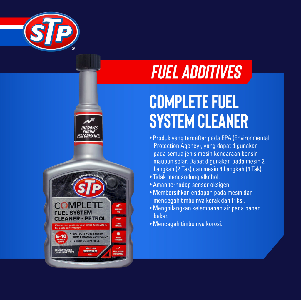 Stp - Petrol Complete Fuel System Cleaner 400 Ml + Takaran Campuran Bensin Mobil Motor Pembersih Ruang Bakar Karbulator