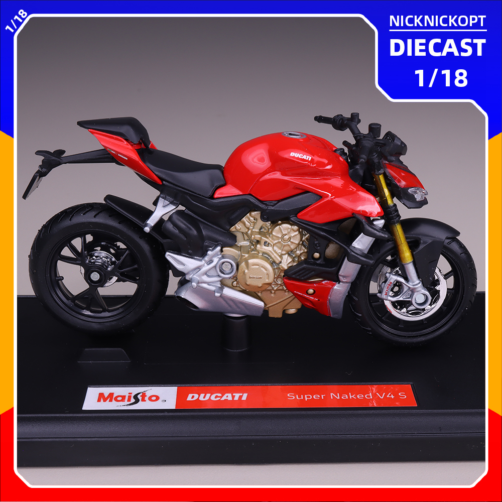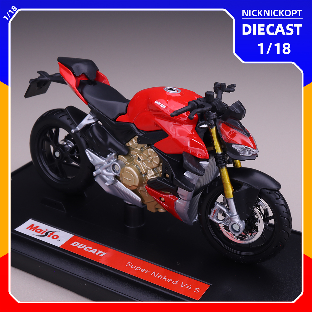 Miniatur Motor Maisto Ducati Super Naked V4 S Skala 1:18 Diecast Mainan Koleksi