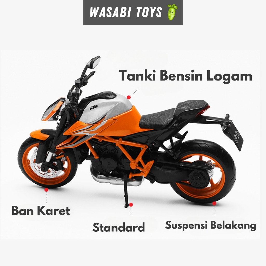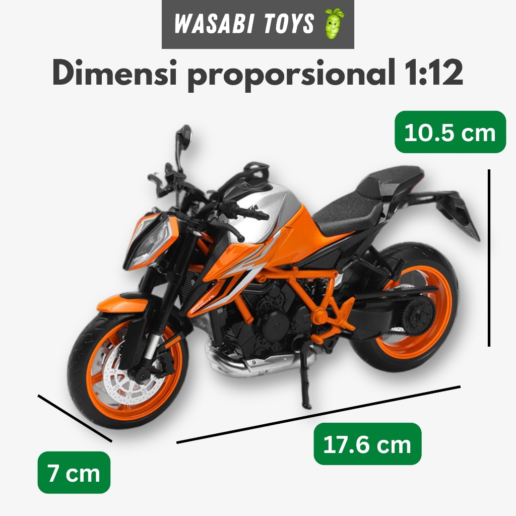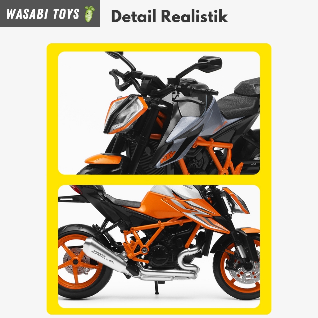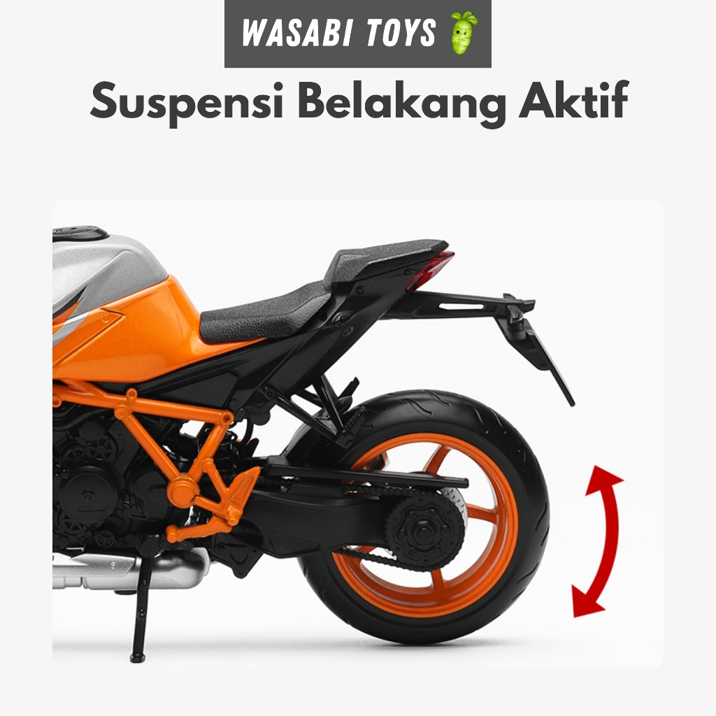 Diecast 1:12 KTM 1290 Super Duke R Miniatur Motor (Dengan Alas Motor, Suspensi, Tanki Logam)